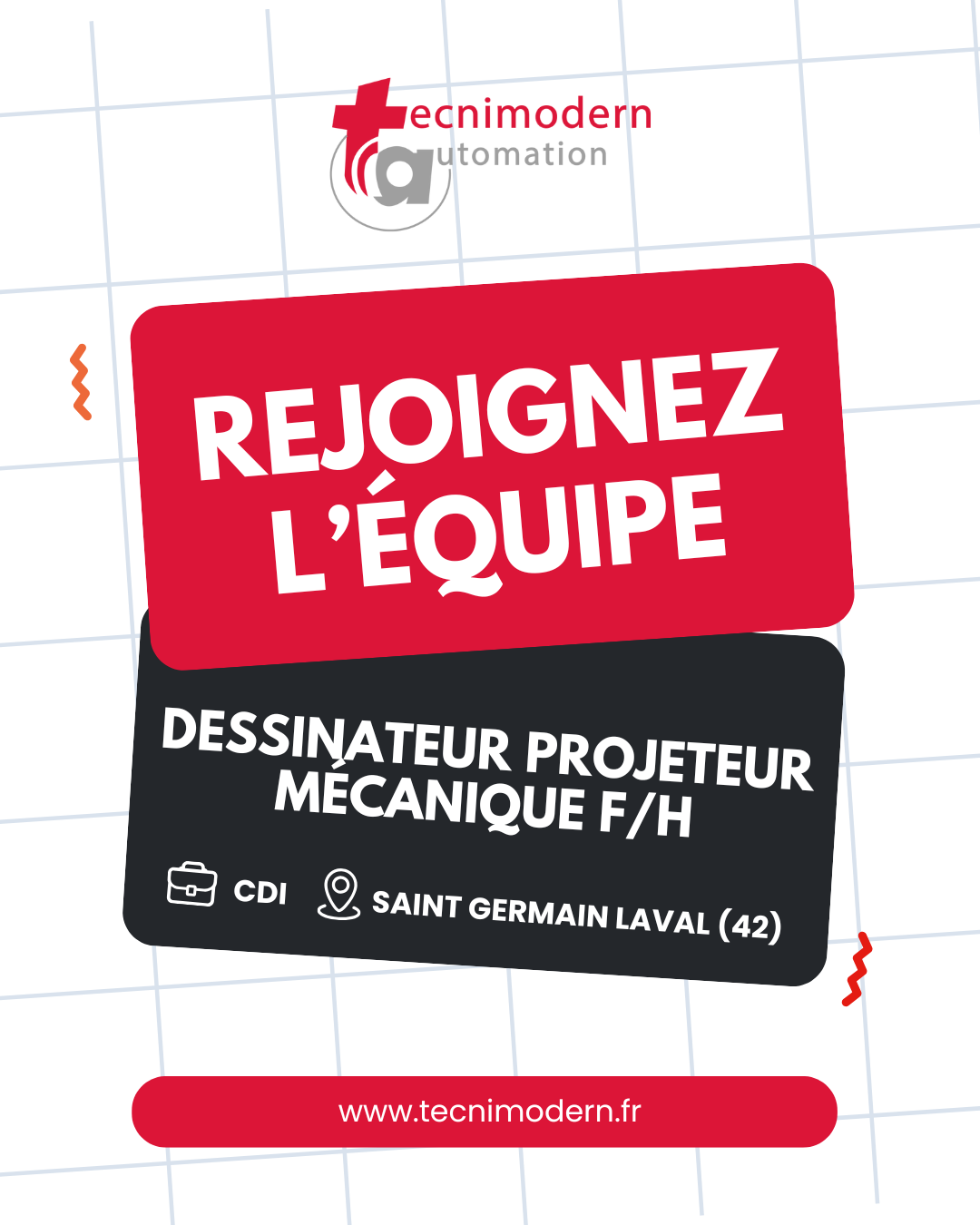 Basée à Saint Germain Laval (42), TECNIMODERN AUTOMATION recherche un Projeteur BE Mécanique (H/F)